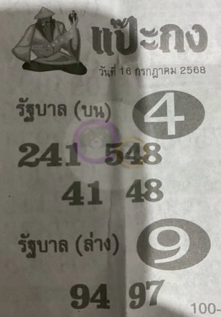 คอหวยห้ามพลาด! หวยซองแป๊ะกง 16/07/68 จัดเต็มแนวทางหวยเน้น ๆ ทั้งบนและล่าง ลุ้นโชคใหญ่