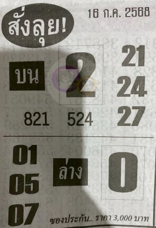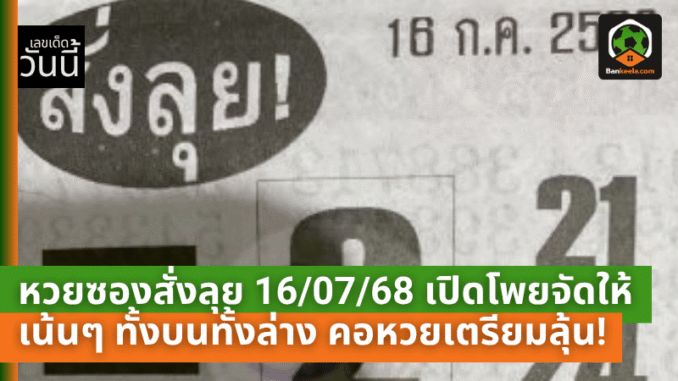 หวยซองสั่งลุย งวด 16 กรกฎาคม 2568