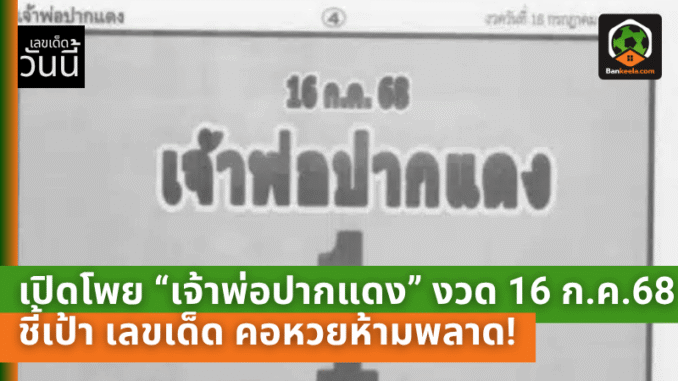 สรุปแนวทางหวย เจ้าพ่อปากแดง งวด 16 กรกฎาคม 2568