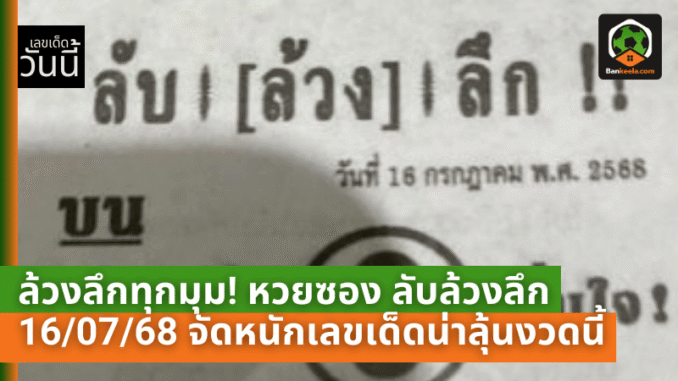สำหรับงวดนี้ หวยซอง ลับล้วงลึก 16/07/68 เปิดตัวเลขดังมาแล้วแบบเน้นๆ ทั้งบนและล่าง ดังนี้