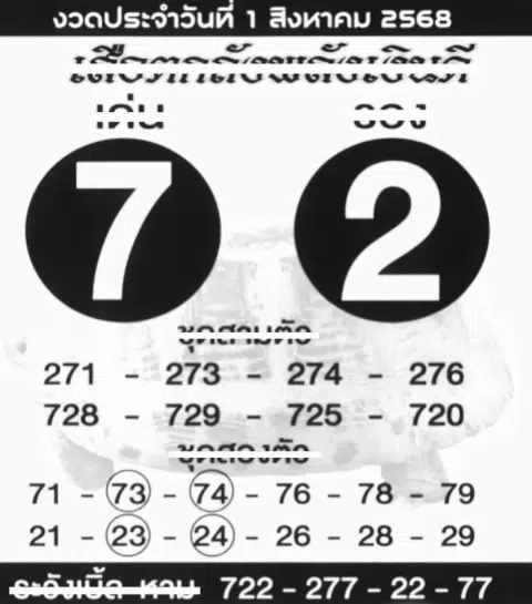 เดินหน้าเข้าโค้งสุดท้ายของเดือนกรกฎาคม คอหวยทั้งประเทศต่างกำลังจับตาหา แนวทางหวย แม่น ๆ เพื่อหวังลุ้นโชคในงวดวันที่ 1 สิงหาคม 2568 และคราวนี้ถึงคิวของอีกหนึ่งสำนักที่มีชื่อเสียงเกรียงไกรในวงการเสี่ยงโชคอย่าง “เสือตกถังพลังเงินดี” ที่ปล่อยโพยออกมาสั่นสะเทือนวงการอีกครั้ง พร้อมจัดเต็มทั้ง เลขเด็ด สามตัว สองตัว เลขเด่น เลขรอง รวมถึงเลขเบิ้ลแบบไม่มีกั๊ก ที่สำคัญคือบางเลขดันไป “ชน” กับเลขดังจาก ‘ปฏิทินคำชะโนด’ แบบจัง ๆ ทำให้กระแสยิ่งพุ่งแรงขึ้นกว่าเดิม