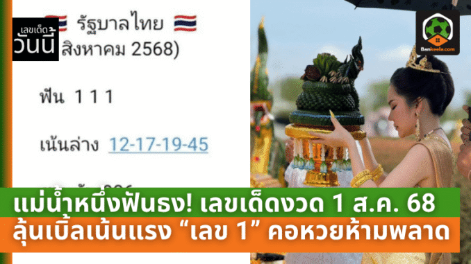 แม่น้ำหนึ่งเผยแนวทาง เลขเด็ดงวดวันที่ 1 สิงหาคม 2568 ที่น่าสนใจดังต่อไปนี้: