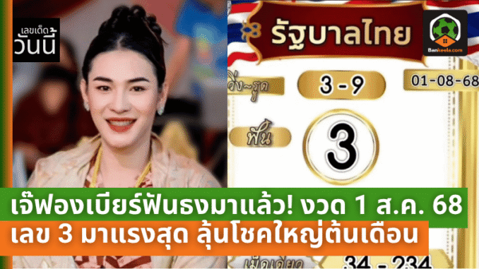 งวดนี้ตรงกับวันศุกร์แรกของเดือน ถือเป็นจังหวะทองของการลุ้นโชคให้ชีวิตเปลี่ยนในพริบตา เจ๊ฟองเบียร์ยืนยันว่า เลขเด่นที่ต้องจับตาเป็นพิเศษคือเลข 3 ซึ่งมาแบบแน่น ๆ ทั้งในชุดสองตัว สามตัว และเลขเม็ดเดียวที่เธอฟันธงแบบมั่นใจ สำหรับคอหวยที่กำลังมองหา เลขเด็ด ไปเสี่ยงโชค ลิสต์นี้ไม่ควรพลาดเด็ดขาด