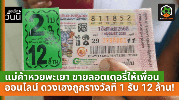วงการเสี่ยงโชคต้องลุกเป็นไฟ! เมื่อแม่ค้าลอตเตอรี่ในจังหวัดพะเยาได้ออกมาเปิดเผยเหตุการณ์สุดปัง หลังขายสลากกินแบ่งรัฐบาลผ่านช่องทางออนไลน์ให้เพื่อนต่างจังหวัด แล้วปรากฏว่าเพื่อนรายนั้นกลายเป็นเศรษฐีในพริบตา เมื่อถูกรางวัลที่ 1 จำนวน 2 ใบ รวมเงินรางวัลสูงถึง 12 ล้านบาท ทำให้เจ้าตัวรีบเดินทางมารับสลากไปขึ้นเงินด้วยตนเอง งานนี้ทั้งแม่ค้าและผู้โชคดีต่างปลื้มปริ่มจนน้ำตาไหล!