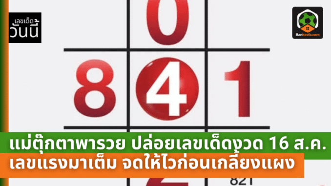 ชุด เลข 3 ตัว ที่ปล่อยออกมาคือ 042 – 841 – 821 ทั้งหมดนี้ถือว่าน่าสนใจ เพราะบางชุดเคยโผล่ในรางวัลเลขท้าย 3 ตัวมาแล้ว ส่วน เลข 2 ตัว ได้แก่ 08 – 41 โดยเฉพาะเลข 41 ที่ถูกจับตามองเป็นพิเศษ เนื่องจากเคยออกเป็นรางวัลเลขท้าย 2 ตัวเมื่อปลายปีที่แล้ว ทำให้มีโอกาสสูงที่จะวนกลับมาอีกครั้ง