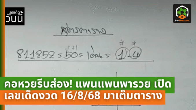จับคู่ตารางเลขเด่นสูตรแพนแพนพารวย 16/8/68