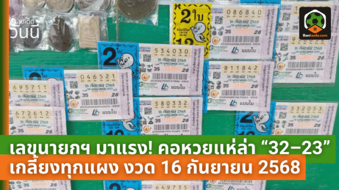 เลขนายกฯ มาแรง! คอหวยแห่ล่า “32–23” เกลี้ยงทุกแผง งวด 16 กันยายน 2568