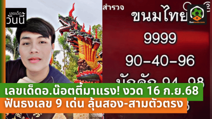 กลับมาเขย่าวงการคอหวยอีกครั้งเมื่อ อ.น๊อตตี้ เซียนใบ้หวยชื่อดังของเมืองไทย ปล่อย แนวทางหวย งวดประจำวันที่ 16 กันยายน 2568 ออกมาเป็นที่เรียบร้อย งานนี้เล่นเอาคอหวยทั่วประเทศตาลุกวาว เพราะเจ้าตัวฟันธงชัดเจนว่า “เลข 9” คือหัวใจหลักของงวดนี้ และยังจัดชุดเน้น ๆ ทั้งเลขสองตัวและสามตัวแบบไม่กั๊ก
