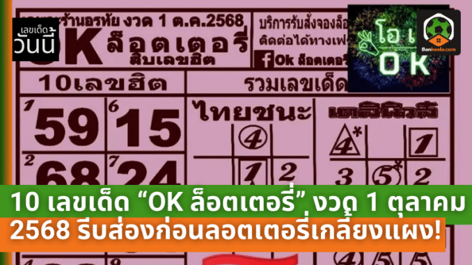 10 เลขเด็ด “OK ล็อตเตอรี่” งวด 1 ตุลาคม 2568 รีบส่องก่อนลอตเตอรี่เกลี้ยงแผง!