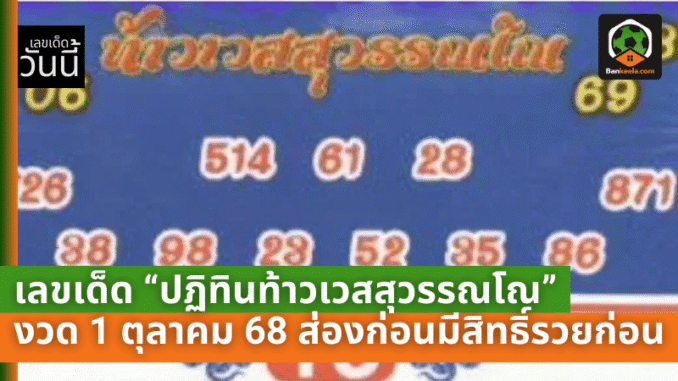 แนวทางหวยจากปฏิทินท้าวเวสสุวรรณโณ งวดวันที่ 1 ตุลาคม 2568