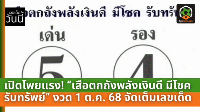 เปิดโพยแรง! “เสือตกถังพลังเงินดี มีโชค รับทรัพย์” งวด 1 ต.ค. 68 จัดเต็มเลขเด็ดพารวย รีบส่องก่อนหมดแผง!