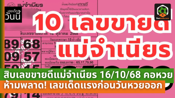 สิบเลขขายดีแม่จำเนียร 16/10/68 คอหวยห้ามพลาด! เลขเด็ดแรงก่อนวันหวยออก