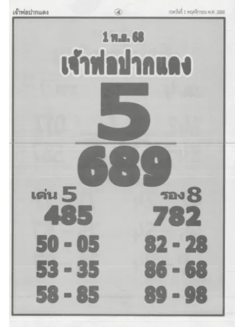 สำหรับงวด 1/11/68 นี้ เจ้าพ่อปากแดง ได้ปล่อยชุดเลขที่ถือว่า “น่าสนใจมาก” ทั้งเลขเด่น เลขรอง และชุดเลขสองตัวสามตัวอย่างครบถ้วน จุดเด่นของสำนักนี้คือให้เลขแบบชัดๆ ไม่อ้อมค้อม เหมาะสำหรับคอหวยที่ชอบแนวทางตรงประเด็น มีโอกาสลุ้นเข้าเป้าแบบเน้นๆ