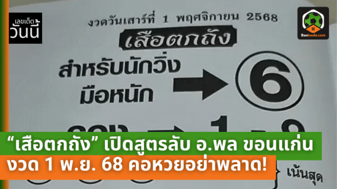 📌 แนวทางหวยบ้านกีฬา — เสือตกถัง งวดวันที่ 1 พฤศจิกายน 2568
