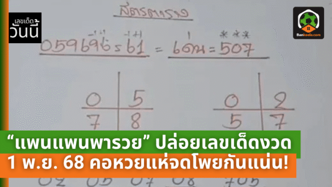เลขเด็ดงวดวันที่ 1 พฤศจิกายน 68
