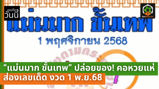 งวดประจำวันที่ 1 พฤศจิกายน 2568 นี้ สถานการณ์เริ่มคึกคักตั้งแต่ต้นสัปดาห์ เพราะหลายสำนักทยอยปล่อยแนวทางออกมาเรื่อยๆ โดยเฉพาะ “แม่นมาก ขั้นเทพ” ที่ทุกคนรู้ดีว่ามักมาช่วงโค้งสุดท้าย แต่ปล่อยทีไรคนแห่ตามเป็นขบวน ที่สำคัญเลขดังจากสำนักนี้มักกลายเป็น เลขขายดี ทันที ใครช้า…มีสิทธิ์พลาดแผงแน่นอน