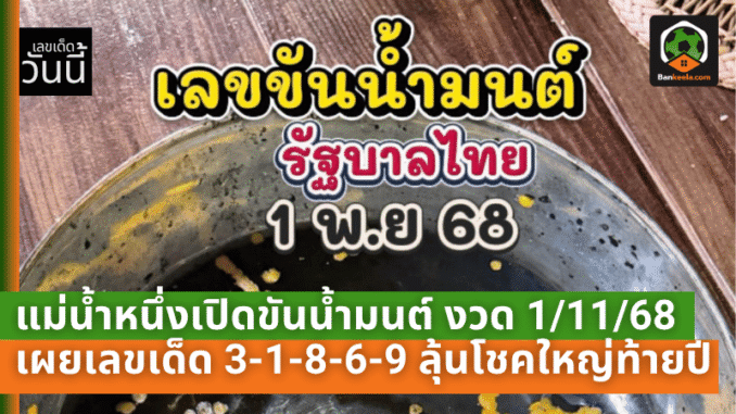 มาแรงก่อนหวยออก! แม่น้ำหนึ่งเปิดขันน้ำมนต์ งวด 1/11/68 เผยเลขเด็ด 3-1-8-6-9 ลุ้นโชคใหญ่ส่งท้ายปี