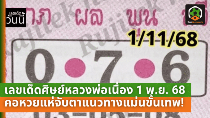 งวดวันที่ 1 พฤศจิกายน 2568 มาถึงอีกครั้ง จุดเดือดของเหล่านักเสี่ยงโชคที่ต่างรอคอยอย่างใจจดใจจ่อ เพราะเป็นวันที่ สลากกินแบ่งรัฐบาลไทย เตรียมประกาศผลรางวัลประจำงวด ซึ่งก่อนหวยออกทุกครั้ง โลกออนไลน์ก็ต้องคึกคักไม่แพ้ตลาดหุ้น เพราะบรรดาคอหวยทั่วประเทศต่างออกล่าหา เลขเด็ด จากสำนักดังทั่วฟ้าเมืองไทย โดยเฉพาะ “ศิษย์หลวงพ่อเนื่อง” สำนักให้หวยชื่อดังที่แฟนพันธุ์แท้หลายคนต่างยกให้เป็นหนึ่งใน “มือวางอันดับต้นๆ” ของวงการแนวทางหวย