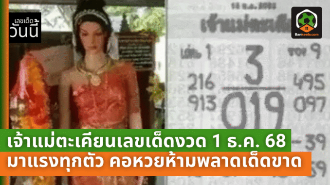 เลขเด็ด “เจ้าแม่ตะเคียน” งวดวันที่ 1 ธันวาคม 2568 ปล่อยมาปุ๊บก็สะเทือนวงการหวยทันที เพราะปีนี้กระแสแรงไม่หยุด ใครเป็นสายลุ้นโชค สายตามหา แนวทางหวย ให้มีลุ้นเข้าวินต้องรีบเข้ามาจด รีบเข้ามาส่อง ก่อนเลขดังหนีหายหมดแผงกันอีกครั้ง โดยงวดนี้บรรดาคอหวยที่เฝ้ารอเลขนำโชคจาก “เจ้าแม่ตะเคียน” ต่างพูดเป็นเสียงเดียวกันว่า ตัวเลขชุดนี้มีเค้าของการ “เข้าเป้า” สูงมาก ไม่ว่าจะเป็นเลขเด่น เลขรอง หรือเลขชุด 2–3 ตัวที่ถูกปล่อยออกมาแบบไม่กั๊ก