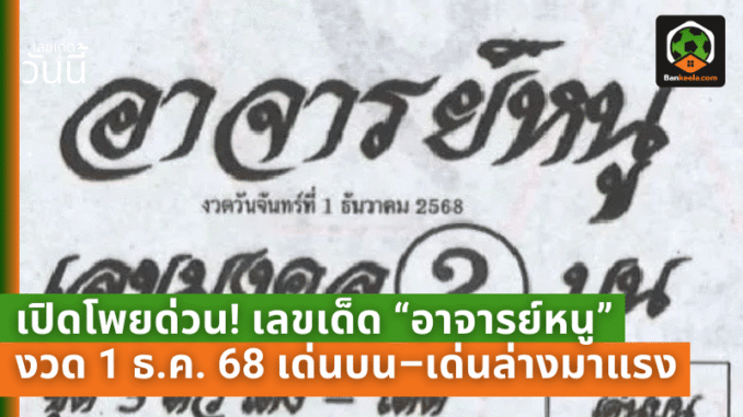 คอหวยไทยเตรียมลุ้นงวดใหญ่ใกล้สิ้นปี งวดวันที่ 1 ธันวาคม 2568 มาถึงแบบไฟลุก บรรดาเซียนตัวเลขแห่ตามหา เลขเด็ด กันแบบไม่พัก และหนึ่งในสำนักที่คอหวยไว้ใจมานานต้องยกให้ “อาจารย์หนู” ที่ขึ้นชื่อว่าให้เลขแม่น เข้าบ่อยจนหลายคนตามแล้วได้โชคกันมาแล้วหลายงวดติด รอบนี้ก็ไม่พลาด ปล่อยชุดเด่นบน–เด่นล่างแบบคมชัด พร้อมทั้งชุด 3 ตัว และ 2 ตัวให้ครบ ใครยังไม่มีแนวทาง รีบส่อง รีบจด ก่อนเข้าช่วงเลขดังอั้นเกลี้ยงแผง!