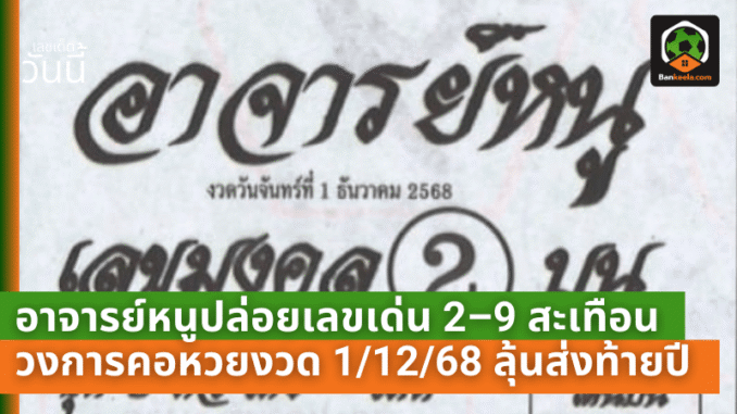 อาจารย์หนูปล่อยของ! เลขเด่น 2–9 สะเทือนวงการคอหวยงวด 1/12/68 ลุ้นดังทั้งบน–ล่างส่งท้ายปี