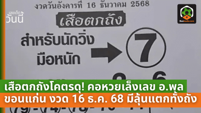 งวดวันที่ 16 ธันวาคม 2568 คอหวยไทยทั้งประเทศเตรียมตัวลุ้นกันอีกครั้ง และหนึ่งในชื่อที่ถูกพูดถึงแบบเสียงแตกทุกงวด คือสำนัก เลขเด็ด ชื่อดังอย่าง “เสือตกถัง สูตรลับ อ.พล ขอนแก่น” ที่บรรดาเซียนตัวจริงต่างยกให้เป็นอีกหนึ่งแนวทางสุดมั่นใจ งวดก่อนผลงานเข้าตรงๆ แบบไม่ต้องกลับ ทำเอาหลายคนรับทรัพย์กันเต็มกระเป๋า สมชื่อเสือที่กระโดดลงจากถังแล้วพุ่งใส่เป้าแบบไม่หลุดกรอบ