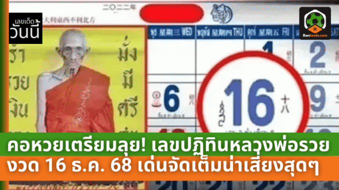 เลขปฏิทินหลวงพ่อรวย งวด 16 ธันวาคม 2568 จากบ้านกีฬา