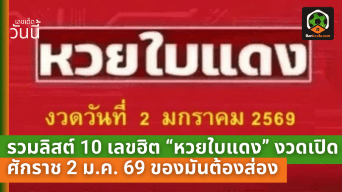 งวดเปิดปีทั้งที คอหวยตัวจริงจะมานั่งเฉย ๆ ได้ไง โดยเฉพาะสายตามล่าลิสต์ เลขเด็ด ขายดี ที่ขึ้นหิ้งในหมวด “หายไวกว่าเงินเดือน” งวดวันที่ 2 มกราคม 2569 นี้ ต้องยกให้ 10 เลขฮิตจากเจ้าแม่กระแสแรงอย่าง หวยใบแดง ที่รวบรวมแนวโน้มเลขขายดีและเลขยอดนิยมให้คอเสี่ยงโชคได้ใช้เป็น แนวทางหวย กันแบบไม่ต้องเสียเวลาเดินถามแม่ค้าหน้าตู้ลอตเตอรี่ทีละแผง