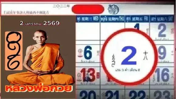 เปิดชุดเลขปฏิทินหลวงพ่อกวย งวด 2 มกราคม 2569