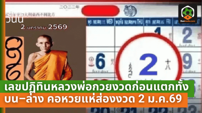 งวดที่ผ่านมา ปฏิทิน “หลวงพ่อกวย” เพิ่งกดเข้าเต็มๆ ทั้งเลข 2 ตัวบนและเลข 2 ตัวล่าง ทำเอาคอหวยหลายคนรับทรัพย์กันเน้นๆ จนต้องบอกต่อกันสนั่นโซเชียล งวดนี้วันที่ 2 มกราคม 2569 เลยกลายเป็นอีกหนึ่งรอบที่คอหวยไทยจับตาแนวทางชุดนี้กันเป็นพิเศษ ใครที่ยังไม่มีเลขในใจ หลายคนก็เลือกหันมาดู เลขเด็ด จากปฏิทินหลวงพ่อกวยเป็นอันดับต้นๆ