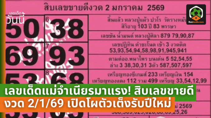 และนี่คือ สิบเลขขายดีแม่จำเนียร งวด 2/1/69 ที่เปิดเผยอย่างเป็นทางการ คอหวยเตรียมปากกาให้พร้อม
