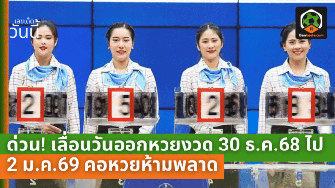ด่วน! เลื่อนวันออกหวยงวด 30 ธ.ค.68 ไป 2 ม.ค.69 คอหวยห้ามพลาดเช็กวันให้ชัวร์ก่อนลุ้นรวย