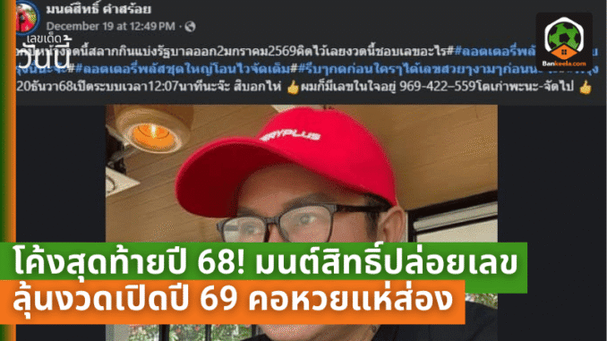 โค้งสุดท้ายก่อนปิดสมุดปี 2568 วงการตัวเลขกลับมาคึกคักอีกระลอก เมื่อ มนต์สิทธิ์ คำสร้อย เจ้าพ่อลูกทุ่งชื่อดังที่คอหวยติดตามกันมาหลายปี ออกมาโพสต์เฟซบุ๊กเคลื่อนไหวอีกครั้ง พร้อมบอกใบ้ตัวเลขที่เจ้าตัว “ชอบเป็นพิเศษ” สำหรับงวดเปิดศักราชใหม่ 2 มกราคม 2569 ทำเอาบรรดาคนตามเลขจากคนดังแห่เข้าไปส่องโพสต์กันยกใหญ่ เพราะมองว่างวดนี้เป็นเหมือนสัญญาณเริ่มต้นดวงการเงินของปีใหม่ ใครที่เชื่อเรื่องจังหวะโชคจังหวะลาภ ต่างไม่อยากพลาดสักตัวเดียว