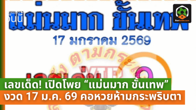 คอหวยทั้งประเทศเตรียมตัวให้พร้อม งวดวันที่ 17 มกราคม 2569 ใกล้เข้ามาทุกที บรรยากาศลอตเตอรี่เริ่มคึกคัก แผงไหนมีชื่อสำนักดัง แผงนั้นคนมุงแน่นทุกงวด โดยเฉพาะสำนัก เลขเด็ด ออนไลน์ที่คอหวยแชร์กันสนั่น และหนึ่งในตัวท็อปที่แฟนๆ ตามกันยาวๆ คือ “แม่นมาก ขั้นเทพ” งวดนี้เปิดโพยมาพร้อมให้ส่องแล้วเรียบร้อย บ้านกีฬา เลยรีบหยิบข้อมูลมาเล่าให้ฟังแบบจัดเต็ม เพื่อใช้เป็น แนวทางหวย ก่อนลอตเตอรี่จะหมดแผงตั้งแต่ยังไม่ทันได้เดินตลาด