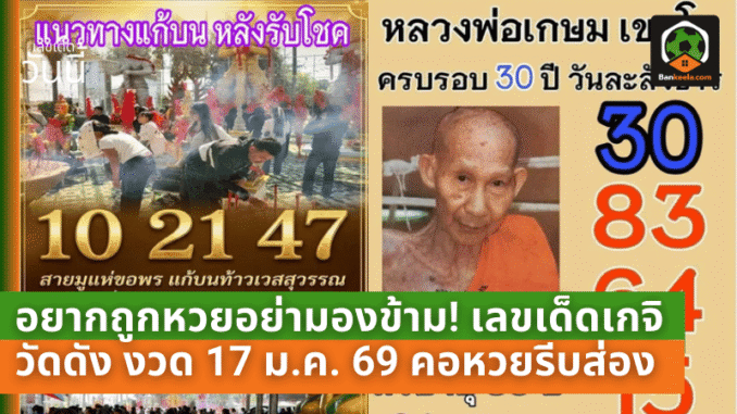เมื่อถึงงวด 17 มกราคม 2569 นี้ จึงไม่แปลกที่คอหวยจะกลับมาจับตาดูเลขจากเกจิวัดดังกันอีกครั้ง หวังลุ้นซ้ำให้โชคดีเหมือนงวดก่อน ๆ