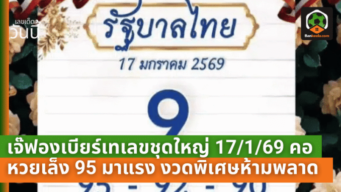 เจ๊ฟองเบียร์เทเลขชุดใหญ่ 17/1/69 คอหวยเล็ง 95 มาแรง งวดพิเศษห้ามพลาด
