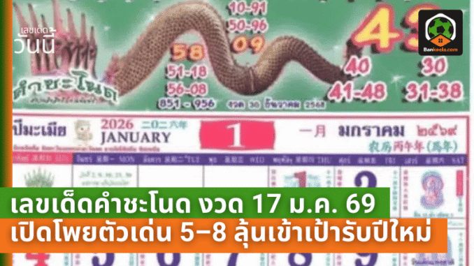 เลขเด็ดคำชะโนดโค้งสุดท้าย งวด 17 ม.ค. 69 เปิดโพยตัวเด่น 5–8 ลุ้นเข้าเป้ารับปีใหม่ไปกับบ้านกีฬา