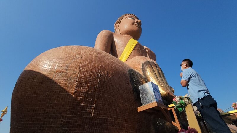 เช้าวันที่ 28 ม.ค. 2569 เวลาราว 10.09 น. ที่วัดกลางบางพระ ต.บางพระ อ.นครชัยศรี จ.นครปฐม เต็มไปด้วยบรรยากาศของสายบุญและสายเสี่ยงโชคที่หลั่งไหลกันมากราบไหว้ “หลวงพ่อสมหวัง” พระพุทธรูปศักดิ์สิทธิ์ปางมารวิชัย หรือปางสะดุ้งมาร องค์ใหญ่สูงกว่า 30 เมตร ตั้งตระหง่านเป็นที่พึ่งทางใจของทั้งชาวไทยและชาวต่างชาติ ใครได้มาเยือนแทบทุกคนต้องขึ้นไปปิดทองที่พระหัตถ์ขวา เพื่อความเป็นสิริมงคล ก่อนจะลงมารับพรและขอพรตามความเชื่อของแต่ละคน
