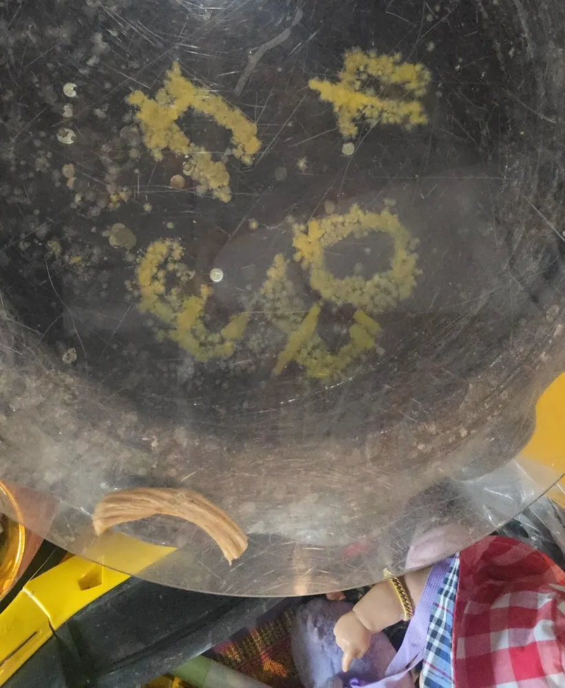 เธอไม่ได้มามือเปล่า แต่นำผ้าขาวม้า, แว่นตา, หมวก และเครื่องดื่มชูกำลังมาถวายตาทองงิ้วราย เหมือนเป็นการ “ทำบุญก่อนขอเลข” ตามความเชื่อของคอหวยหลายคน ว่าการให้ก่อนจะช่วยเปิดดวง เปิดทางให้โชคลาภไหลมาเทมา