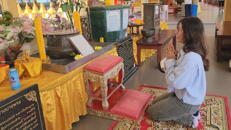 ในแต่ละวันจะมีผู้คนเดินทางมากราบไหว้ด้วยความศรัทธา บางส่วนตั้งใจมาขอพรเรื่องชีวิต การงาน และอีกจำนวนไม่น้อยก็ไม่พลาด “ขอเลข” ตามความเชื่อ เพื่อเก็บไว้เป็น เลขเด็ด ไปต่อยอดลุ้นโชค