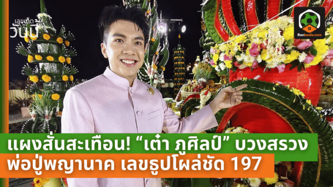 เมื่อรำเสร็จ “เต๋า ภูศิลป์” เดินไปที่โต๊ะเครื่องเซ่นและชี้นิ้วไปที่เลขธูปที่เห็นเป็นเลข 197 ซึ่งยังสอดคล้องกับเลขประจำตัวพ่อปู่พญานาคคือ 97 ทำเอาคนในงานฮือฮาไปทั้งลาน