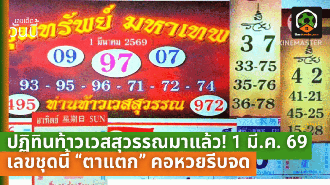 งวดวันที่ 1 มีนาคม 2569 นี้ บรรยากาศบอกเลยว่าเดือด! เพราะเลขที่ปล่อยออกมามีทั้งชุด 3 ตัว และชุด 2 ตัวแบบคัดๆ ให้เลือกเล่นได้หลายหน้า ไม่ว่าจะสายชอบลุ้นหนักๆ หรือสายเน้นกันพลาดก็หยิบไปจัดพอร์ตได้ตามถนัด แต่ขอย้ำชัดๆ ว่านี่คือการคาดเดาตามแนวทางเท่านั้น ใช้ประกอบการตัดสินใจแบบมีสติ แล้วค่อย “เลือกซื้อ” ให้เหมาะกับทุนของตัวเอง จะได้ลุ้นสนุกแบบไม่เจ็บตัว
