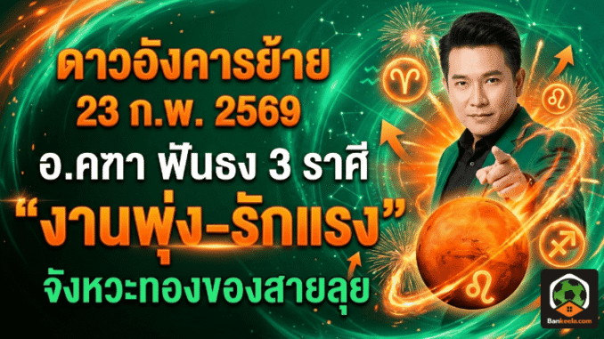 กระแส ดูดวงวันนี้ วันที่ 23 กุมภาพันธ์ 2569 มีเหตุการณ์โหราศาสตร์สำคัญอย่าง “ดาวอังคารย้าย” ที่ส่งแรงสั่นสะเทือนทั้งกับดวงเมืองและดวงชะตาของแต่ละคนแบบหลบไม่พ้น โดยนักพยากรณ์ชื่อดัง “อาจารย์คฑา ชินบัญชร” ออกมาเคาะชัด ๆ ว่า 3 ราศีเตรียมรับความเฮงแบบยืนหนึ่ง เพราะดาวอังคารย้ายเข้าสู่ราศีกุมภ์ในวันที่ 23 กุมภาพันธ์ 2569 เวลา 01:34 น.