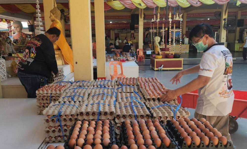 สองสามีภรรยาชาวแม่กลอง “บนไว้ต้องมาแก้” ยกไข่ไก่ 100 แผงถวายครบ 3,000 ฟอง