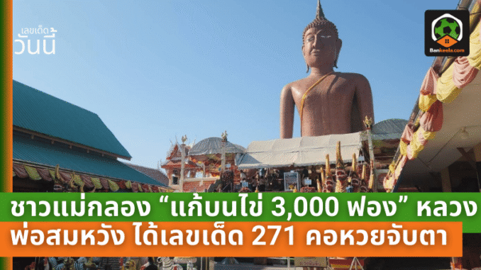 วันนี้มีเหตุการณ์ที่สะดุดตาคอหวยเป็นพิเศษ เมื่อ นายชัย และ นางน้ำฝน เจริญศรีสุข สองสามีภรรยาชาวจังหวัดสมุทรสงคราม นำไข่ไก่สดจำนวน 100 แผง รวม 3,000 ฟอง มาทำการแก้บนตามคำที่เคยให้ไว้ โดยมีเจ้าหน้าที่ช่วยกันนำไข่ลงจากรถและจัดวางเป็นระเบียบบริเวณลานกว้างหน้าองค์หลวงพ่อสมหวัง ภาพไข่จำนวนมหาศาลเรียกความสนใจผู้คนที่อยู่ในวัดได้ทันที เพราะเป็นการแก้บนที่เห็นแล้วรู้เลยว่า “ศรัทธาไม่ใช่เล่นๆ”