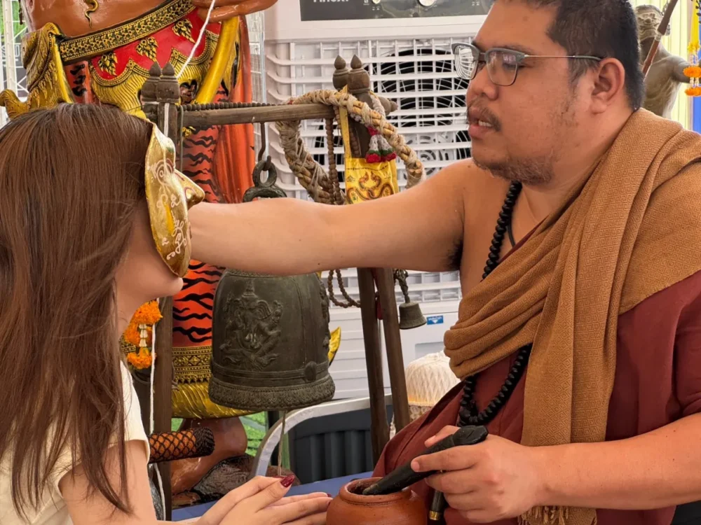 พิธีเสริมดวงแน่น ๆ “หน้าทอง–เปิดดวงเศรษฐี” และรับน้ำมนต์จากสังข์นิลกาฬ