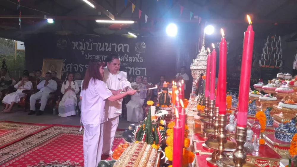 หมู่บ้านนาคาบวงสรวงบุญหลวงสุดยิ่งใหญ่! คอหวยแห่ส่องธูปมงคล “เลขเด็ด” โผล่ชัด ลุ้นเฮงงวด 1/3/69