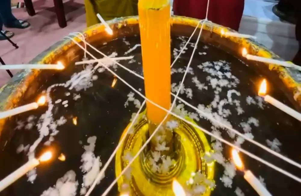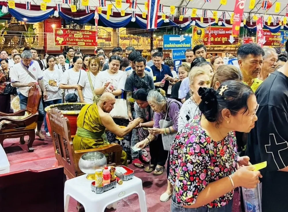 ไฮไลต์ที่ทำให้คอหวยไทยตาเป็นประกาย คือช่วงก่อนอาบน้ำมนต์ เมื่อบรรดานักเสี่ยงโชคต่างเข้าไปมุงดูหยดน้ำตาเทียนที่หยดลงในอ่างน้ำมนต์ แล้วตีความเป็น เลขเด็ด เพื่อใช้เป็น แนวทางหวย ลุ้นงวดวันที่ 1 มี.ค. 69 โดยหลายคนบอกว่าเห็นเป็นเลข 198 และ 86 ซึ่งก็แล้วแต่ความเชื่อและสายตาของแต่ละคน