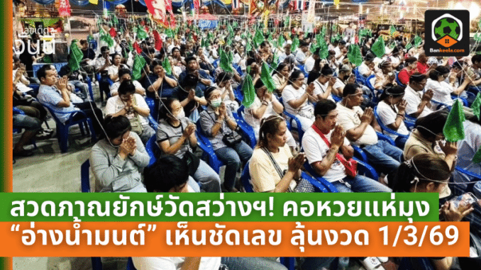 สวดภาณยักษ์ใหญ่สะเทือนวัดสว่างฯ! คอหวยแห่มุง “อ่างน้ำมนต์” เห็นชัดเลขเด็ดลอยเด่น ลุ้นงวด 1/3/69
