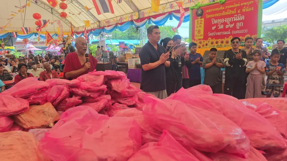 บรรยากาศสายหวยบอกเลยว่า “มีของ” เพราะที่วัดสว่างอารมณ์ แคแถว ต.ขุนแก้ว อ.นครชัยศรี จ.นครปฐม ช่วงนี้กำลังคึกคักจากงานปิดทองลูกนิมิต 9 วัด 99 ลูก เพื่อมอบให้วัดยากจนใน 9 จังหวัดถิ่นกันดาร งานจัดยาวตั้งแต่ 12 ก.พ. ถึง 8 มี.ค. 2569 แถมปีนี้นับเป็นปีที่ 11 แล้ว คนทำบุญยังหลั่งไหลไม่ขาดสาย จนบรรยากาศมันเหมือน “งานบุญรวมพลสายมู” แบบเต็มระบบ